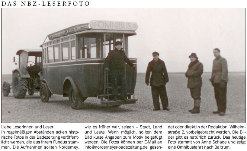 Das heutige Foto stammt von Anne Schade und zeigt eine Omnibusfahrt nach Baltrum.