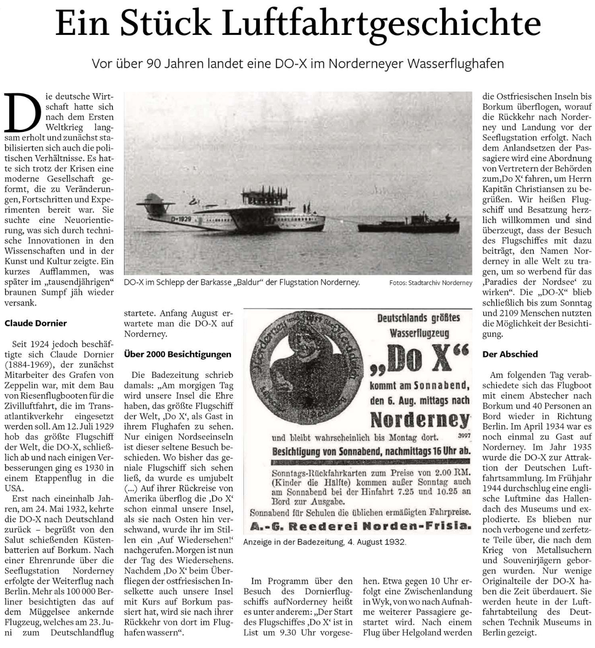 Bericht der NBZ über die Landung (vor über 90 Jahren) der DO-X auf Norderney.