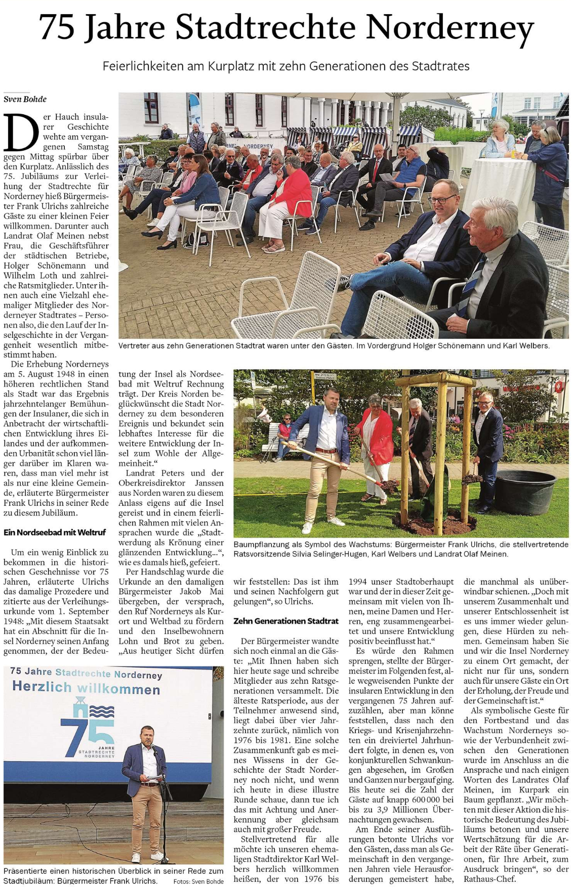 5.8.: 75 Jahre Stadtrechte Norderney - Feierlichkeiten am Kurplatz.