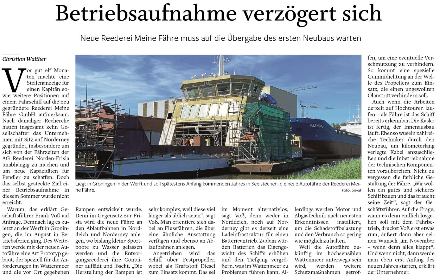 Verzögerungen Betriebsaufnahme "Meine Fähre"