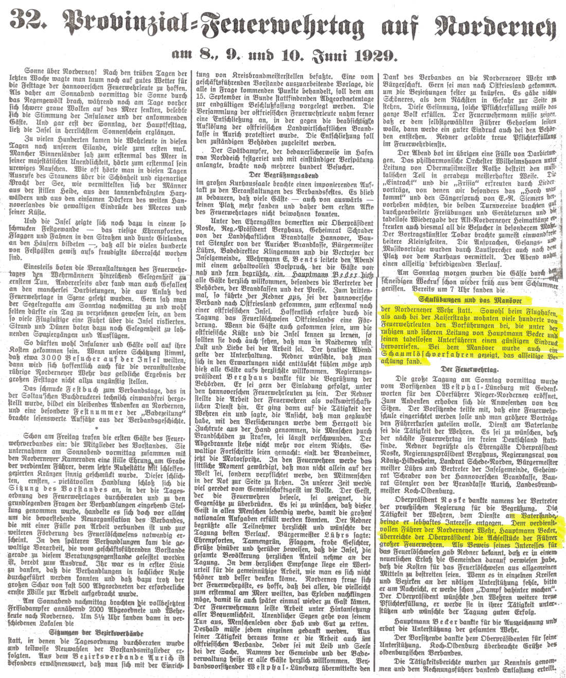 32. Provinzial-Feuerwehrtag auf Norderney am 8., 9. und 10. Juni 1929 auf Norderney