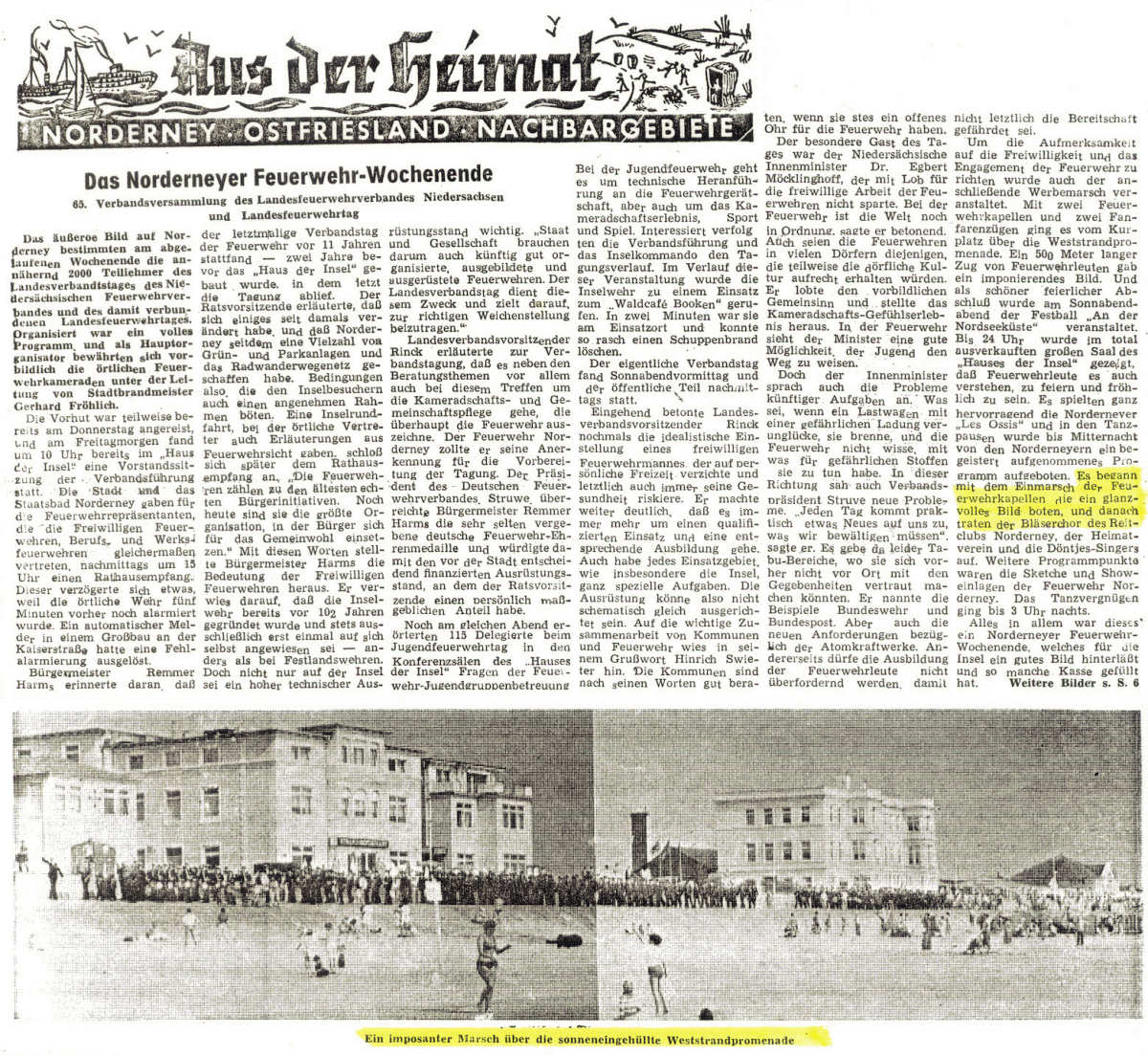Im letzten Marschblock (Westisches Kinderheim) maschieren die Norderneyer. Vorne weg Tambourmajor Wilhelm Wolff.