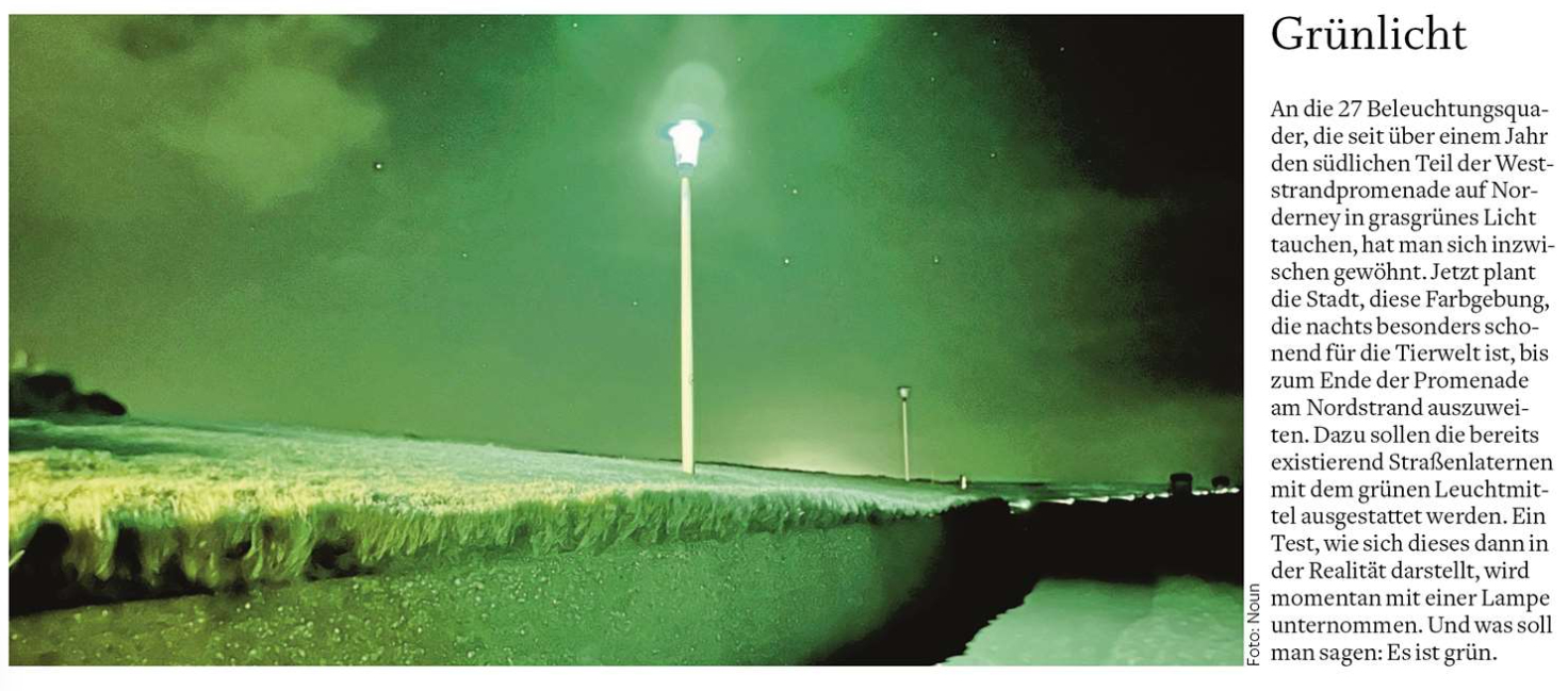 Seit über einem Jahr beleuchten 27 Beleuchtungsquader den südlichen Teil der Weststrandpromenade mit grünem Licht.